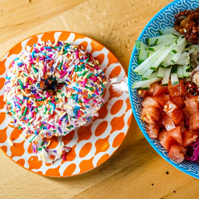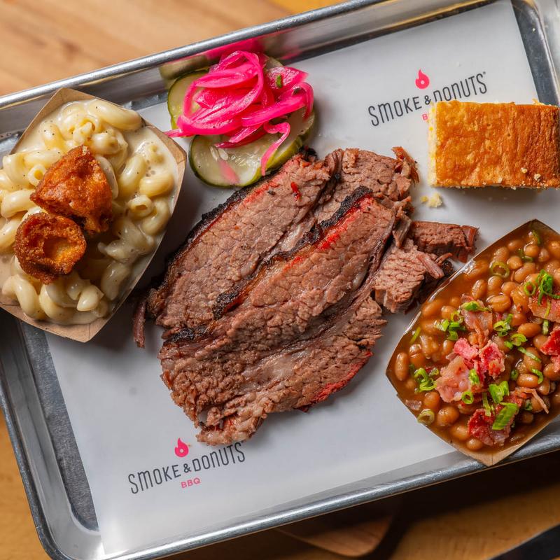 Established by Ian and his wife Juliana in 2016, Smoke & Donuts began as a pop-up restaurant. Juliana said “donuts!” Ian said barbecue!” and Smoke & Donuts was born. The pop-up evolved into a food truck with a full BBQ catering kitchen and smokehouse. In February of 2023, Smoke & Donuts BBQ opened its brick-and-mortar location in The Milk District.