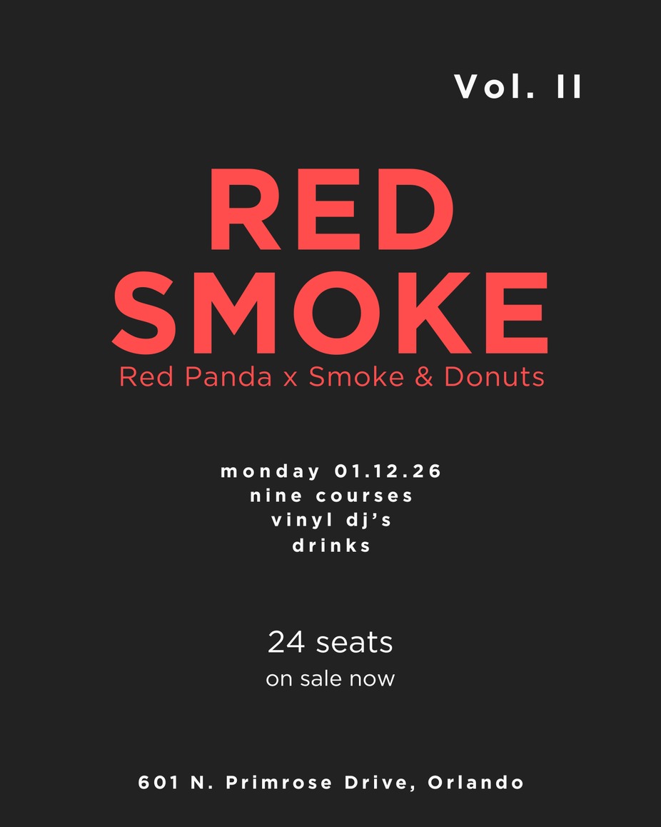 Red Smoke is a collaborative tasting menu from Red Panda Noodle and Smoke & Donuts BBQ. The first events sold out. Join us.